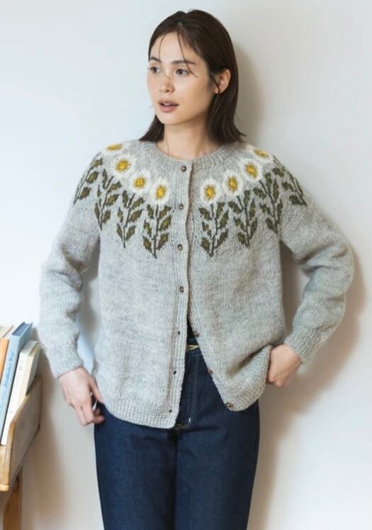 【店頭販売のみ】手編みウール100% 花柄カーディガン (フェアトレード品)