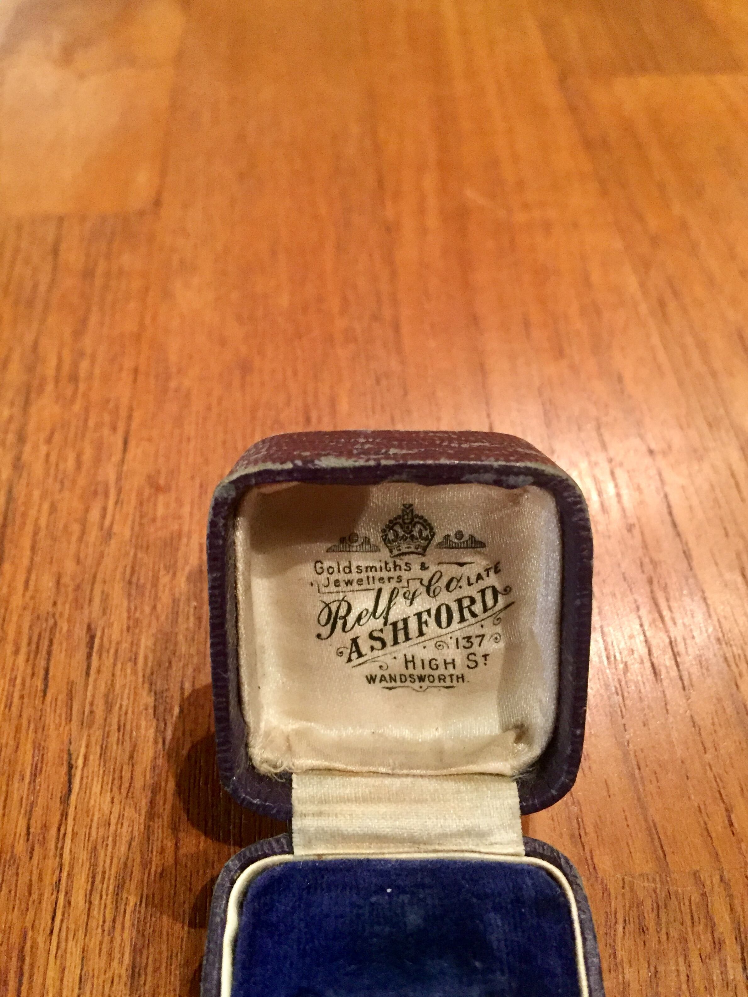 イギリスのAshfordという町にあった宝飾店のリングボックスです。