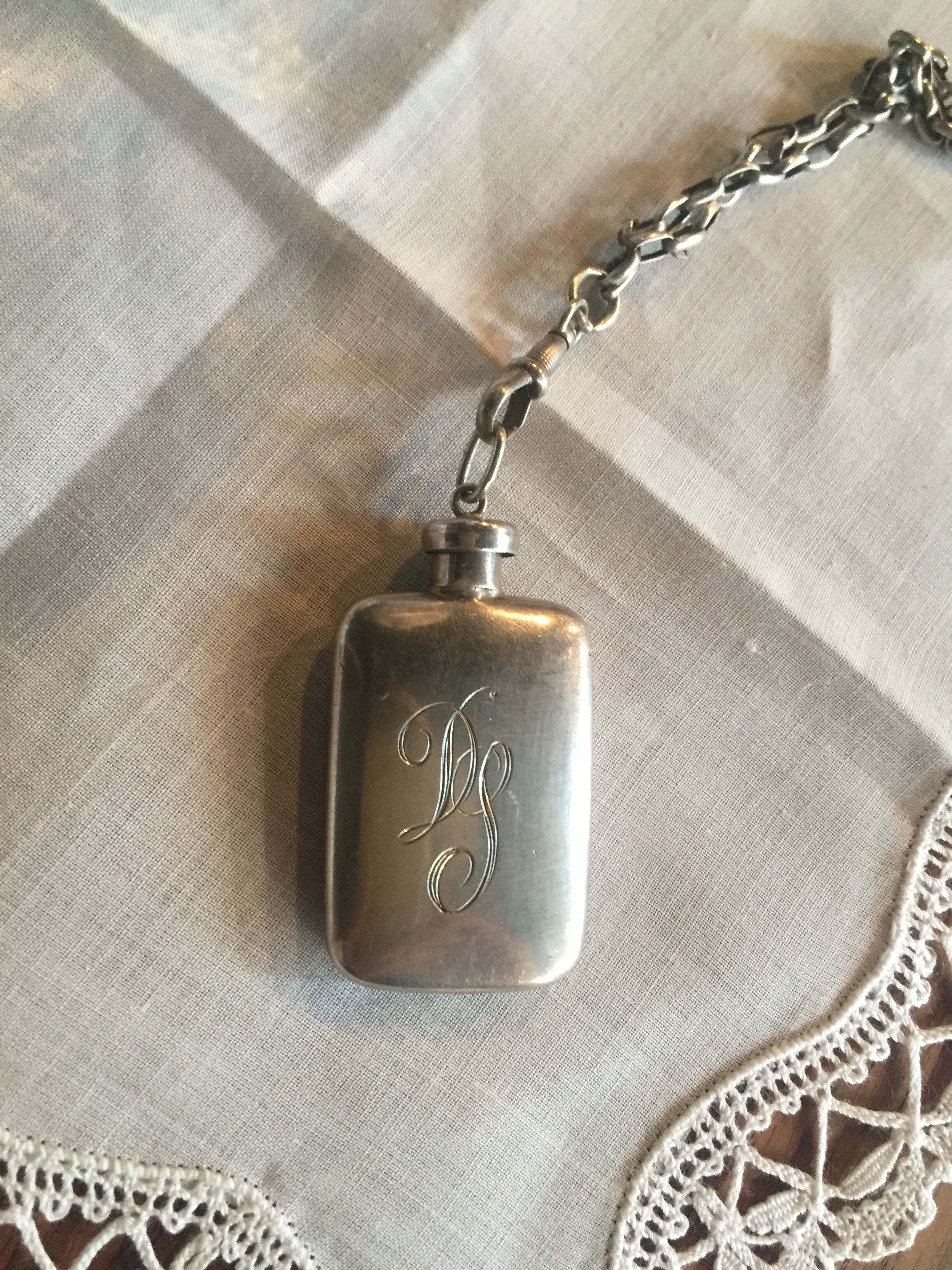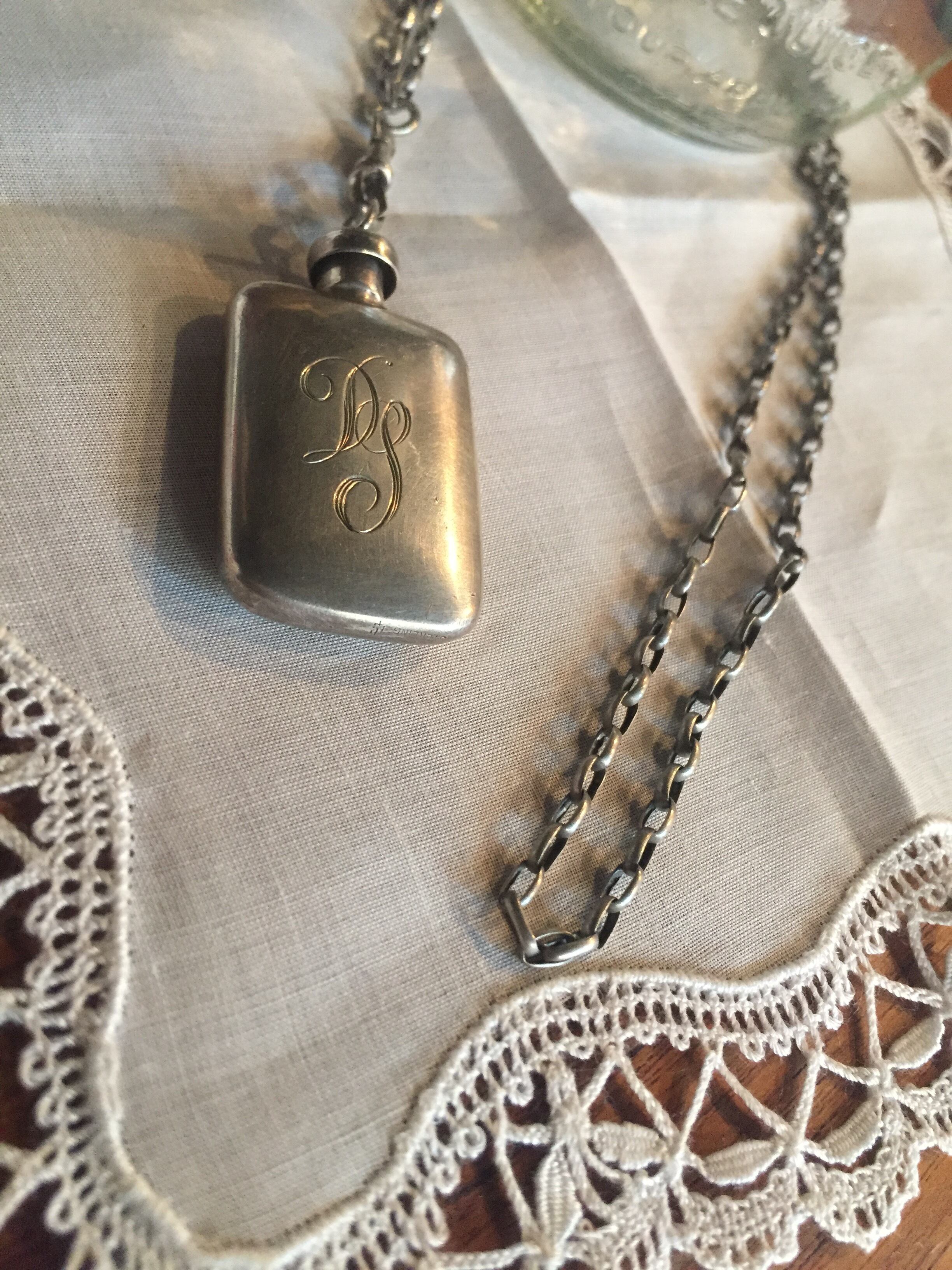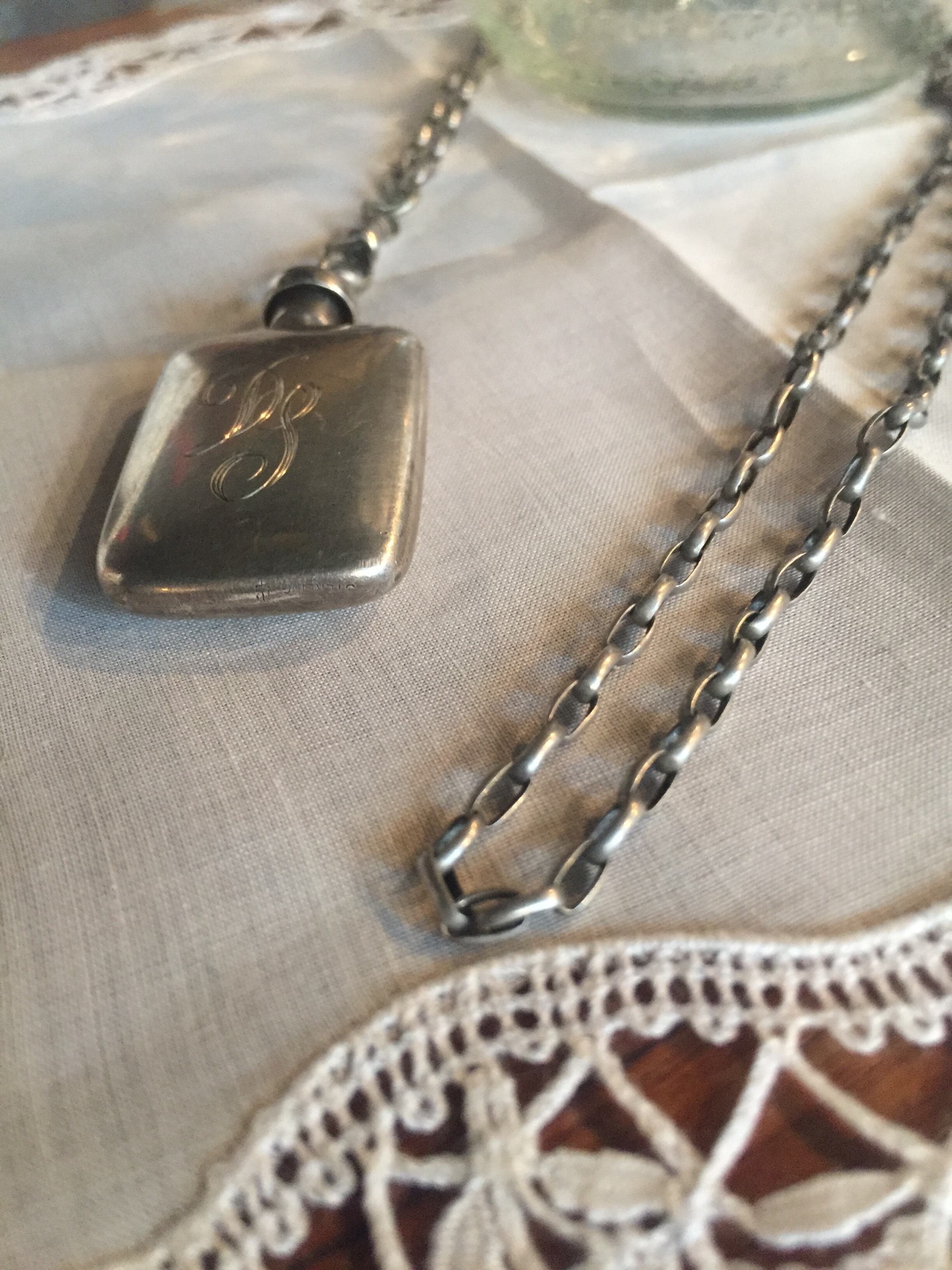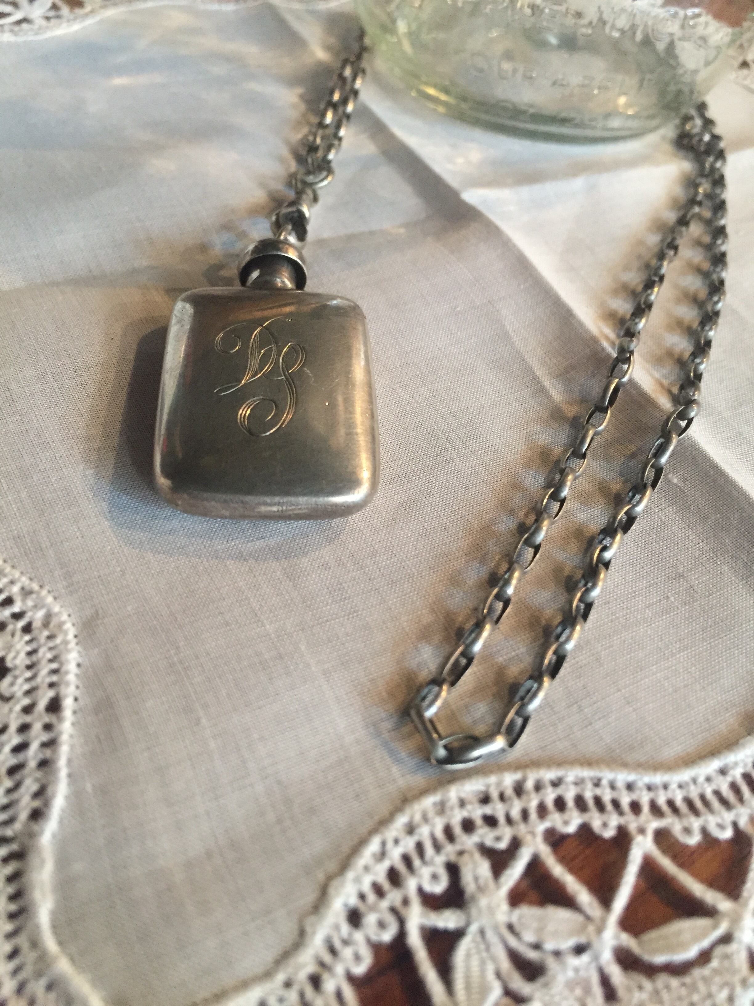 USヴィンテージ シルバー製 イニシャルモノグラムが彫られた パフュームボトル ネックレス