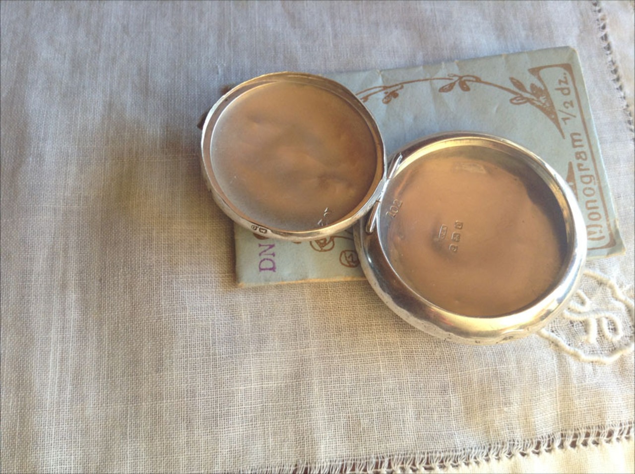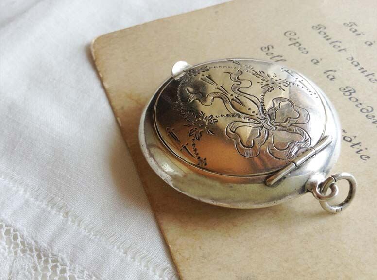 英国リボンのシャンデリアシルバー製コンパクト