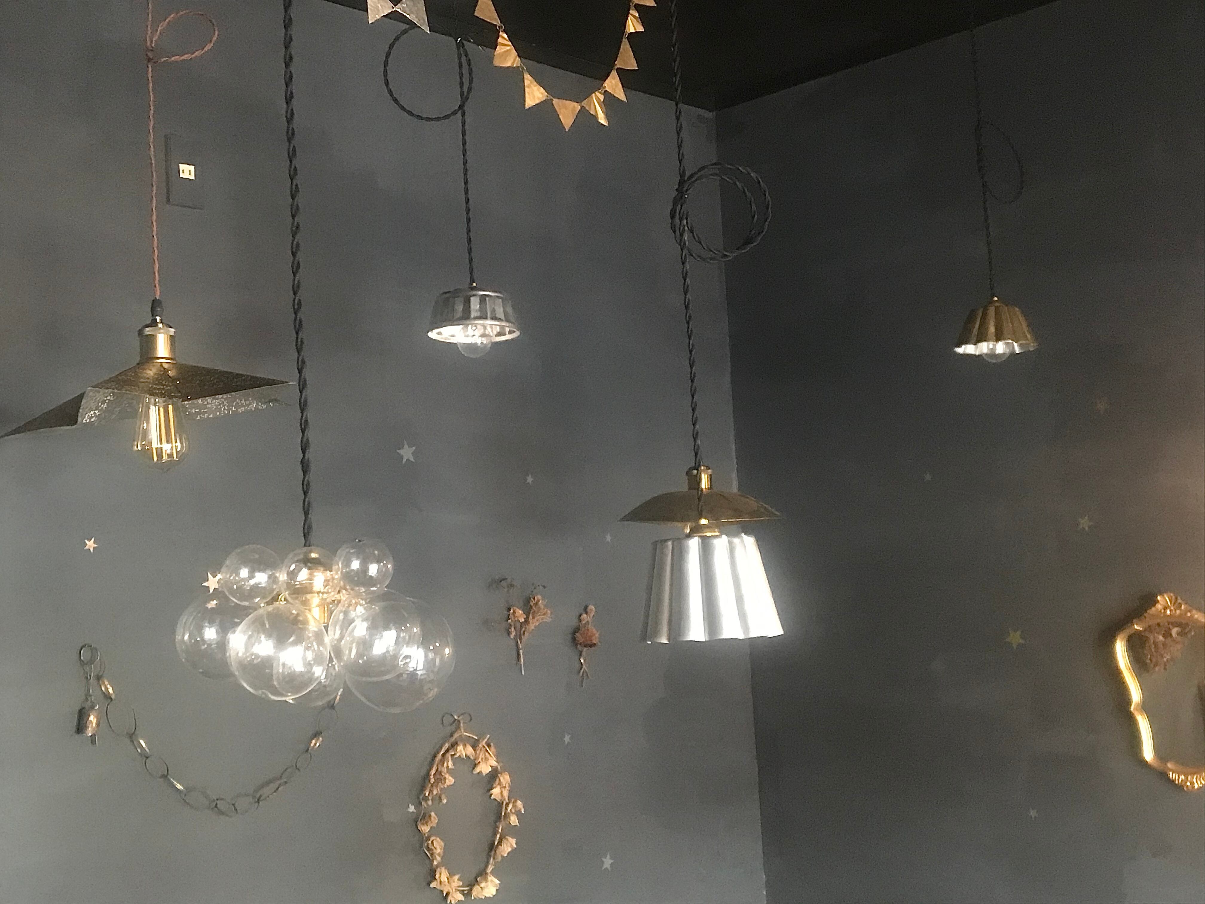 ひとつひとつ吹きガラスでハンドメイドで作られたシャボン玉のようなランプ。