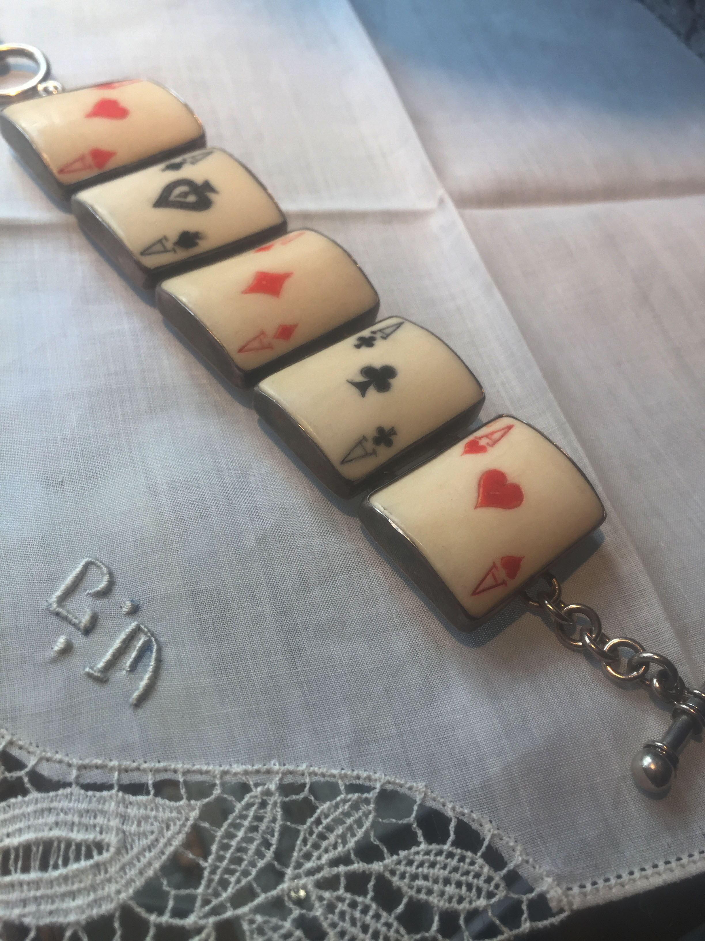 ヴィンテージ象牙のオールエースの幸運トランプブレスレット